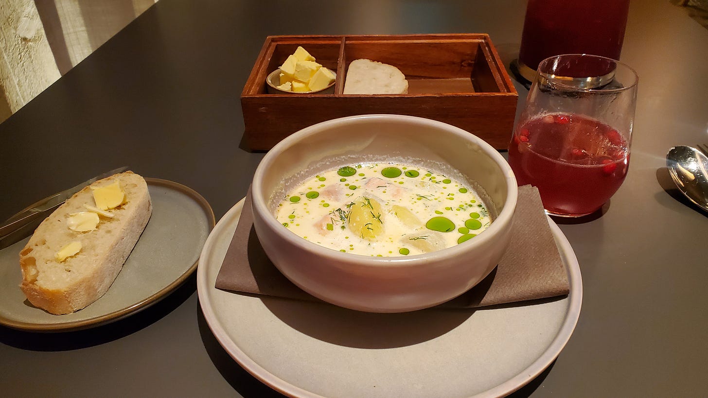 The food in Estonia was amazing. I suppose this is another American contrast—here, the portions are huge but the quality is mediocre in midlevel restaurants. I prefer the European approach of deliciousness instead of leftovers. And they eat vegetables for breakfast! The hotel breakfast wasn’t the warmed eggs and waffles affair I’m used to (and which my kids love). Instead, it was roasted tomatoes and mushrooms, yogurt, fresh juice, brown bread, tiny sausages, and, of course, salmon. Over the course of a week, I had salmon on salad, salmon on pancakes, salmon on brown bread, roasted salmon, and—my favorite—salmon, potato and dill soup. Coupled with the sauna and endless walking, I was feeling quite virtuous and healthy by the end of my week in Estonia.